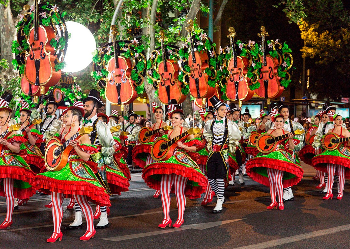Um dos momentos mais estruturados da celebração são as Marchas Populares. Trata-se de desfiles organizados por bairros, com figurinos, coreografias e música própria.